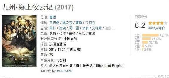 明星公司:《九州海上牧云記》震撼觀眾,開播首日豆瓣評分從8.1升到8.2