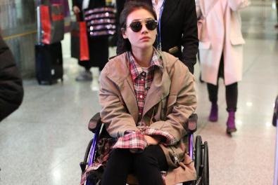明星經(jīng)紀(jì):馬思純金馬獎(jiǎng)?lì)C獎(jiǎng)典禮后返京,腳傷難忍坐輪椅前行