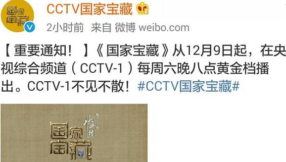 高娛傳媒明星經(jīng)紀(jì)公司消息 12月8日《國家寶藏》節(jié)目組官方微博發(fā)布消息:節(jié)目從12月9日起,在央視綜合頻道(CCTV-1)每周六晚八點(diǎn)黃金檔播出。CCTV-1不見不散!