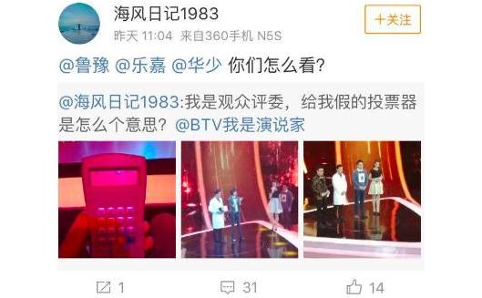 前兩天袁立曝光《演員的誕生》節(jié)目組給現(xiàn)場投票觀眾投票的是個假的投票器,讓大家對這檔節(jié)目的投票套路更有了深深的認(rèn)識。但是卻很快被人打臉,稱投票器這事太假了,這明明是網(wǎng)友發(fā)出來的BTV《我是演說家》的假投票器,連網(wǎng)友曬出來的照片都一樣一樣的。