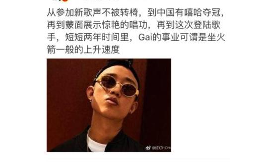 ? 明星經(jīng)紀(jì)公司:《中國(guó)有嘻哈》冠軍Gai將參加《歌手2》 網(wǎng)友:炮灰!-高娛傳媒